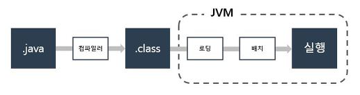 자바는 소스프로그램의 확장자가 .java이고, JDK안에 담겨있는 자바 전용 컴파일러인 javac에 의해 .class파일로 컴파일되며, 컴파일된 클래스파일은 자바 가상 기계(JVM)에 의해 실행된다.