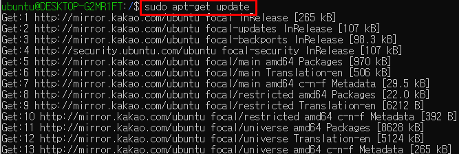 apt-get update는 sudo apt-cache search를 통해 우리에게 보여주는 항목들을 최신화 시켜주는 명령어이다.