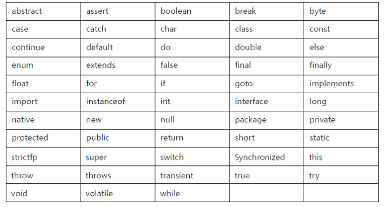 예약어는 ‘키워드’ 또는 ‘리져브드 워드’ 라고 하며, 프로그래밍언어의 구문에 사용되는 단어를 의미한다. 예약어는 변수 뿐만 아니라 클래스, 메서드의 이름으로도 사용할 수 없다.