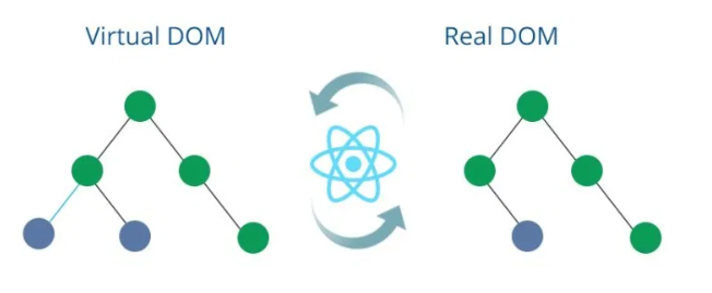 Virtual DOM은 가상의 Document Object Model을 말한다. 일반적으로 html코드를 짜고 웹 브라우저에서 html파일을 열게되면 html코드들이 DOM을 만들게 된다. 그리고 만약 html코드의 특정 한 부분이 변경된다면 전체 DOM을 새롭게 만들게되어 비효율적인 구조이다. 이러한 문제점을 리액트는 가상의 DOM을 만들어 진짜 DOM과 비교하여 변경 사항이 있을 경우 전체를 새롭게 만드는게 아니라 변경된 부분만 진짜 DOM에 반영하는 방식으로 작업을 수행한다.