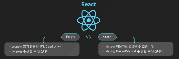 state는 동적인 데이터를 다룰 때 사용하며 사용자와의 상호작용을 통해 데이터를 동적으로 변경을 해야할 때 사용한다. state는 클래스형 컴포넌트에서만 사용할 수 있는데 각각의 state는 독립적이라 다른 컴포넌트의 직접적인 접근은 불가능하다. 그러나 자신보다 상위의 state는 변경이 가능하며, state를 변경해주는 함수를 props로 받는다면 state의 변경이 가능하다.