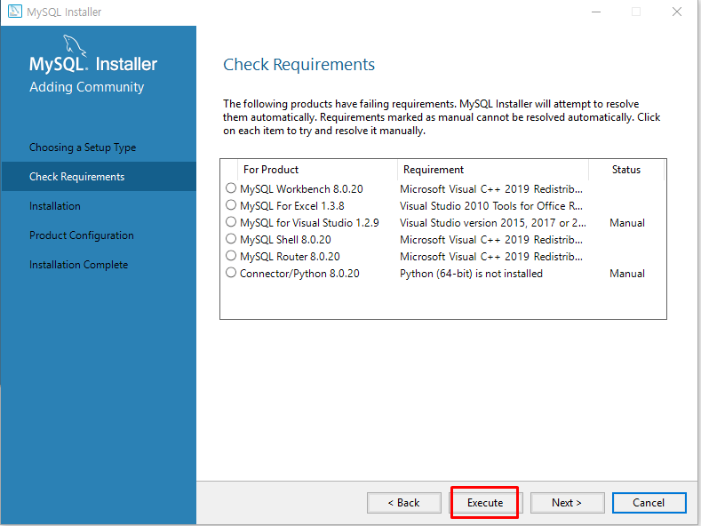 10. 'Execute' 클릭 후 모든 제품이 설치되면 'Next' 클릭