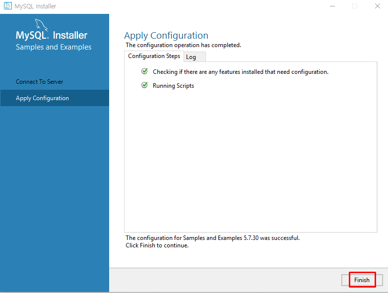 25. 설치 후 MySQL 워크벤치와 쉘을 바로 실행할지의 여부를 독자가 선택하여 'Finish' 클릭하면 MySQL 설치 끝~!