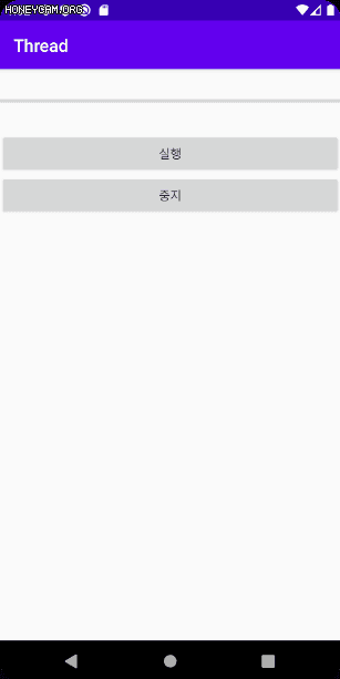 본 예제는 쓰레드를 활용하여 ProgressBar를 버튼을 통하여 진행률을 컨트롤한것을 구현한것이다.