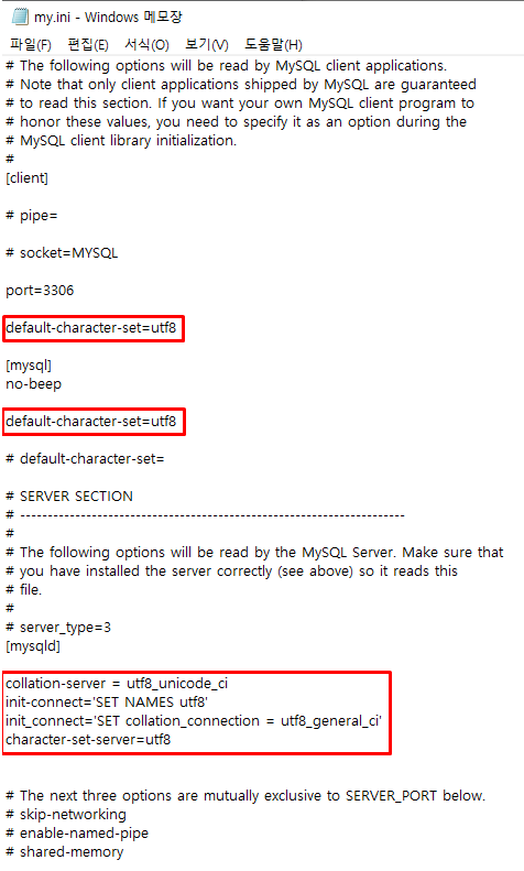 1. 우선 'my.ini' 파일을 찾아서 관리자권한으로 연다.