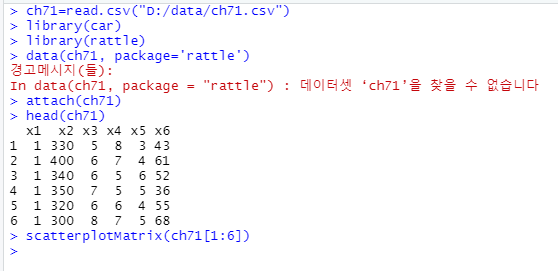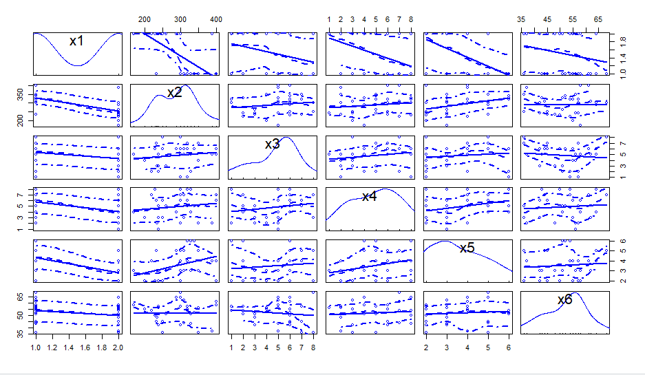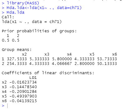 x1변수만을 제외하고 대체로 정규분포를 보이고 있다. 따라서 분석자는 선형판별분석을 실시하면 된다. 선형판별분석은 정준판별분석 또는 판별분석이라고 부른다.