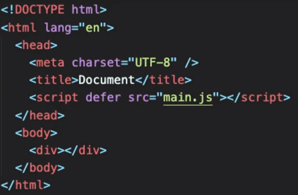헤드태그 내부에 스크립트를 작성하는 또다른방법은 defer추가하여 작성하는 것이다. defer를 스크립트 태그에 추가하면 브라우저는 파싱을 순차적으로하다가 스크립트 태그를 만나면 비동기적으로 .js파일을 서버로부터 다운받으면서 파싱을 마무리하며, 그렇게 파싱을 마치면 다운받아두었던 .js파일을 실행한다. 가장 이상적인 스크립트 태그 작성방법이 되겠다.