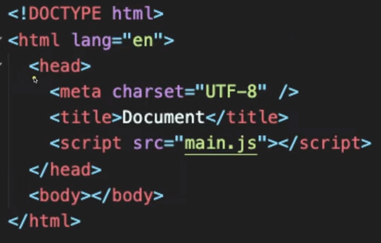 위와 같이 스크립트 태그를 헤드태그안에 작성할 경우 브라우저가 순차적으로 HTML파일을 파싱하다 스크립트 태그를 만나면 파싱을 멈추고 스크립트파일을 서버로부터 다운받고 실행한 후 파싱을 이어간다. 이로인해 야기되는 문제점은 바디태그를 파싱하여 만들어진 DOM요소로 스크립트를 실행하는 .js파일이 존재하지 않는 바디의 DOM요소에 접근하려 하기 때문에 스크립트태그는 오류가 발생한다.