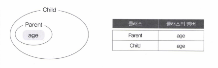만일 조상클래스에 age라는 정수형 변수를 멤버변수로 추가한다면 자손 클래스는 조상 클래스의 멤버를 모두 상속받기 때문에, 자손 클래스에는 자동적으로 age라는 멤버변수가 추가된 것과 같은 효과를 얻는다.