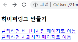 같은 사이트를 연결하는 경우 HTML파일의 경로명만 지정하면 된다. 단, 같은 사이트에 사진이미지가 있는 html웹페이지가 있어야 한다.
