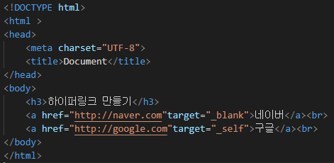 하이퍼링크는 <a>태그의 href 속성으로 만들며 href속성 말고도 target, download 속성이 있다